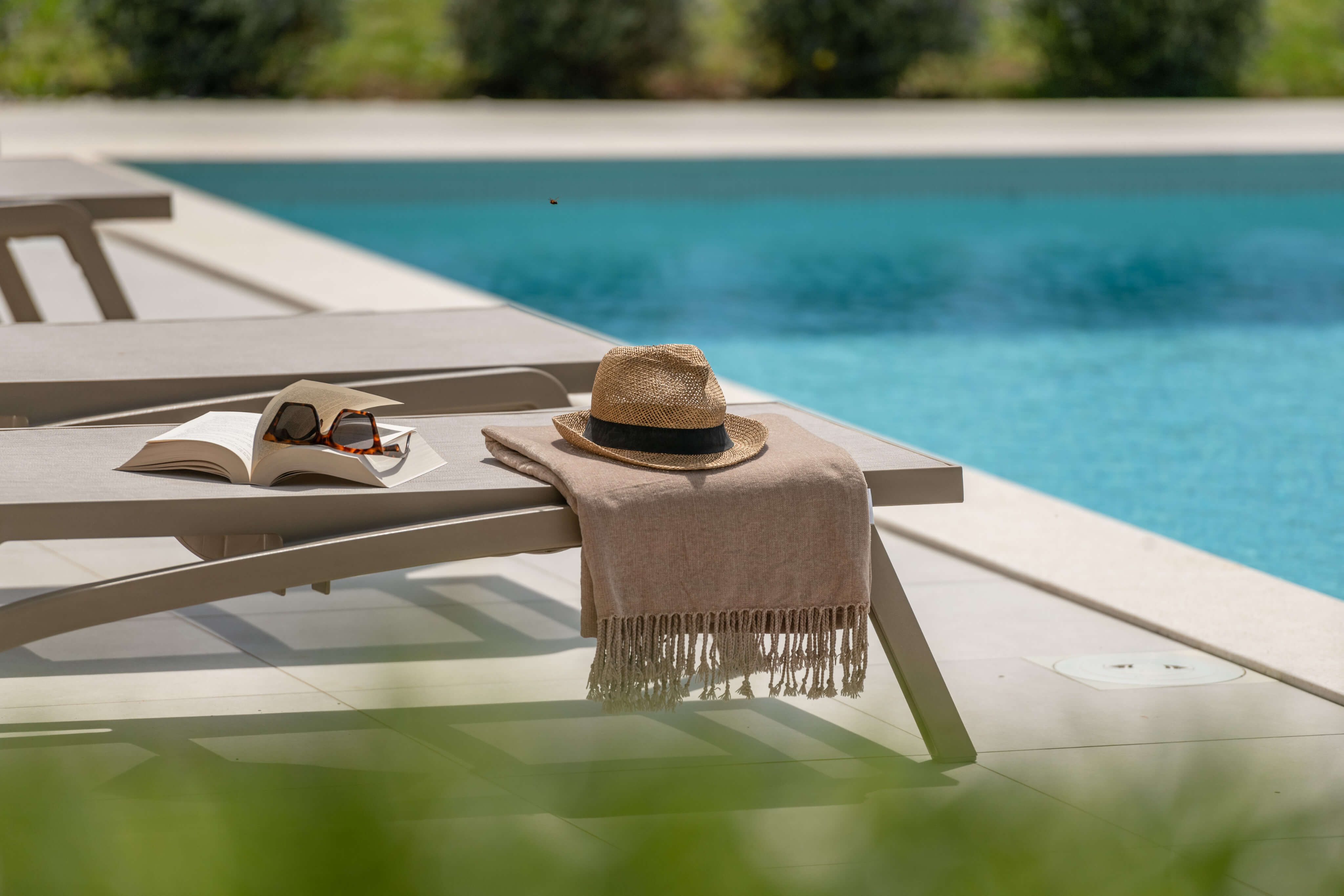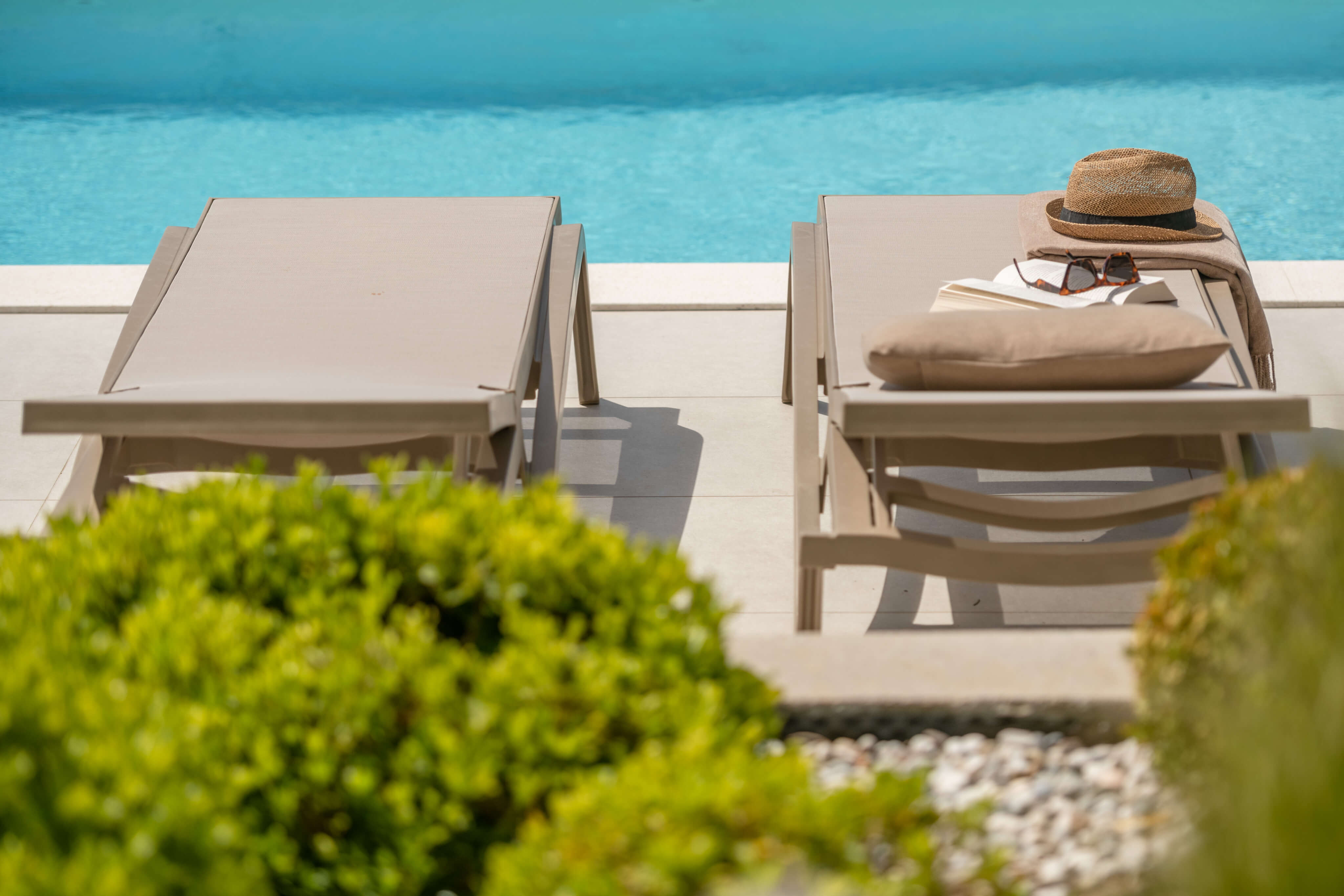 Umgeben Sie sich mit der Schönheit der Natur in den exquisiten Außenbereichen unserer Villa. Ein üppiger Garten voller duftender Rosmarin-, Immortellen- und Levanderblüten mit einem kristallklaren Swimmingpool in der Mitte schafft die perfekte Umgebung für Entspannung und Freizeit und fügt sich nahtlos in die natürliche Landschaft ein.