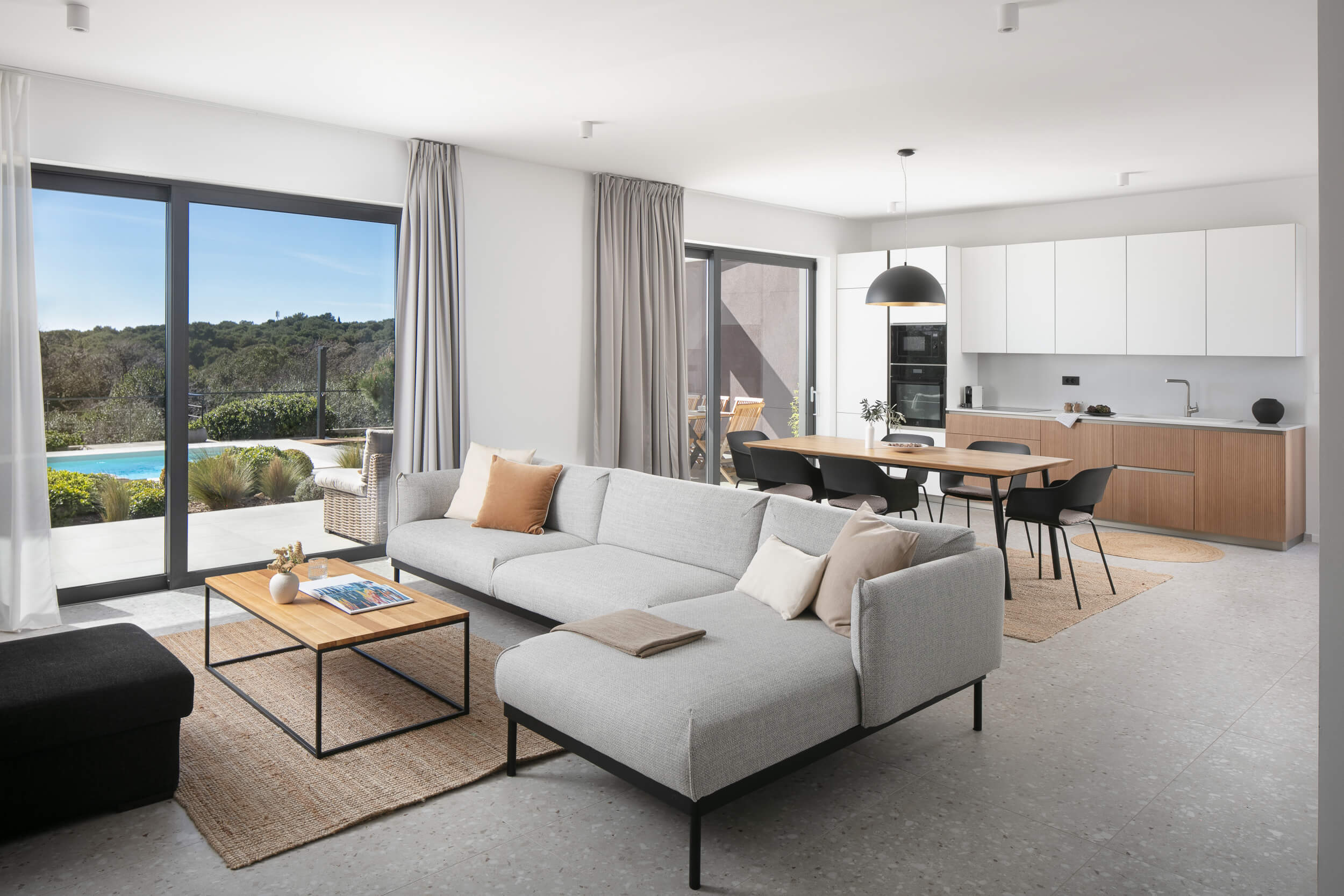 Die Innenräume unserer Villen vereinen moderne Eleganz mit klassischem Komfort. Offene, luftige Räume mit hohen Decken, natürlichen Materialien und geschmackvollem Dekor schaffen eine lichtdurchflutete, einladende Atmosphäre. Ob zum Entspannen oder zur Unterhaltung, jedes Detail ist auf Komfort und Stil ausgelegt und sorgt für ein ruhiges und luxuriöses Erlebnis.
